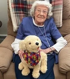 comfort. She took Happy on her walker everywhere she went, and he was at her side