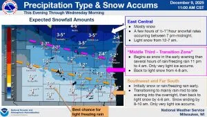 Sheboygan County is in for a quick-hitting round of winter weather according to National Weather Service forecasters. A Winter Weather Advisory remains in effect from 6 this evening until 6 tomorrow morning, with the main concern being that of accumulating snow on roadways. But along with the snow factor, there's a ch...